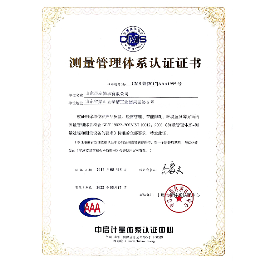 測量(liàng)管理體系認證證(zheng)書