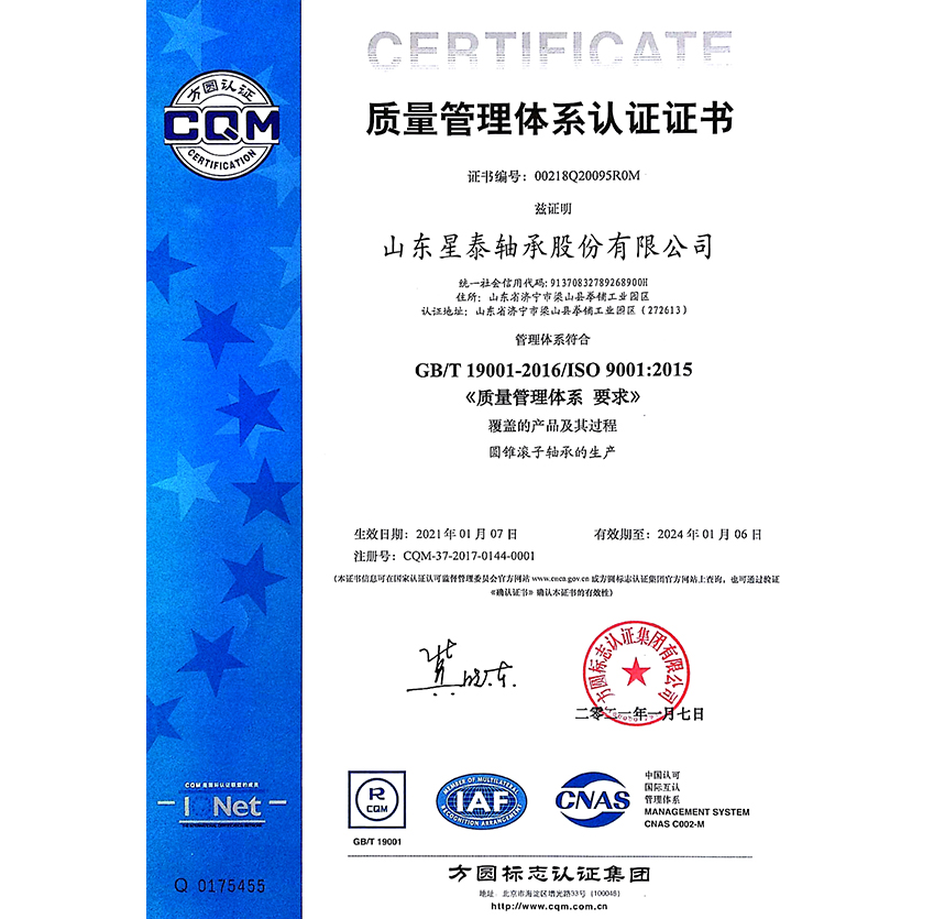 質量管理體系(xì)認證證書